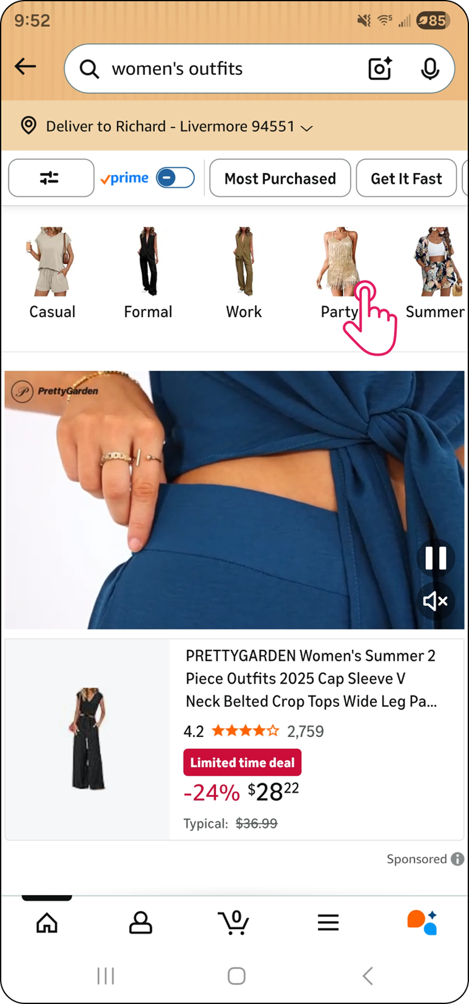 For customers who begin with broad, open-ended searches such as “women’s outfits”, and are still forming intent, Broad Search Categories appear just below the refinement bar.