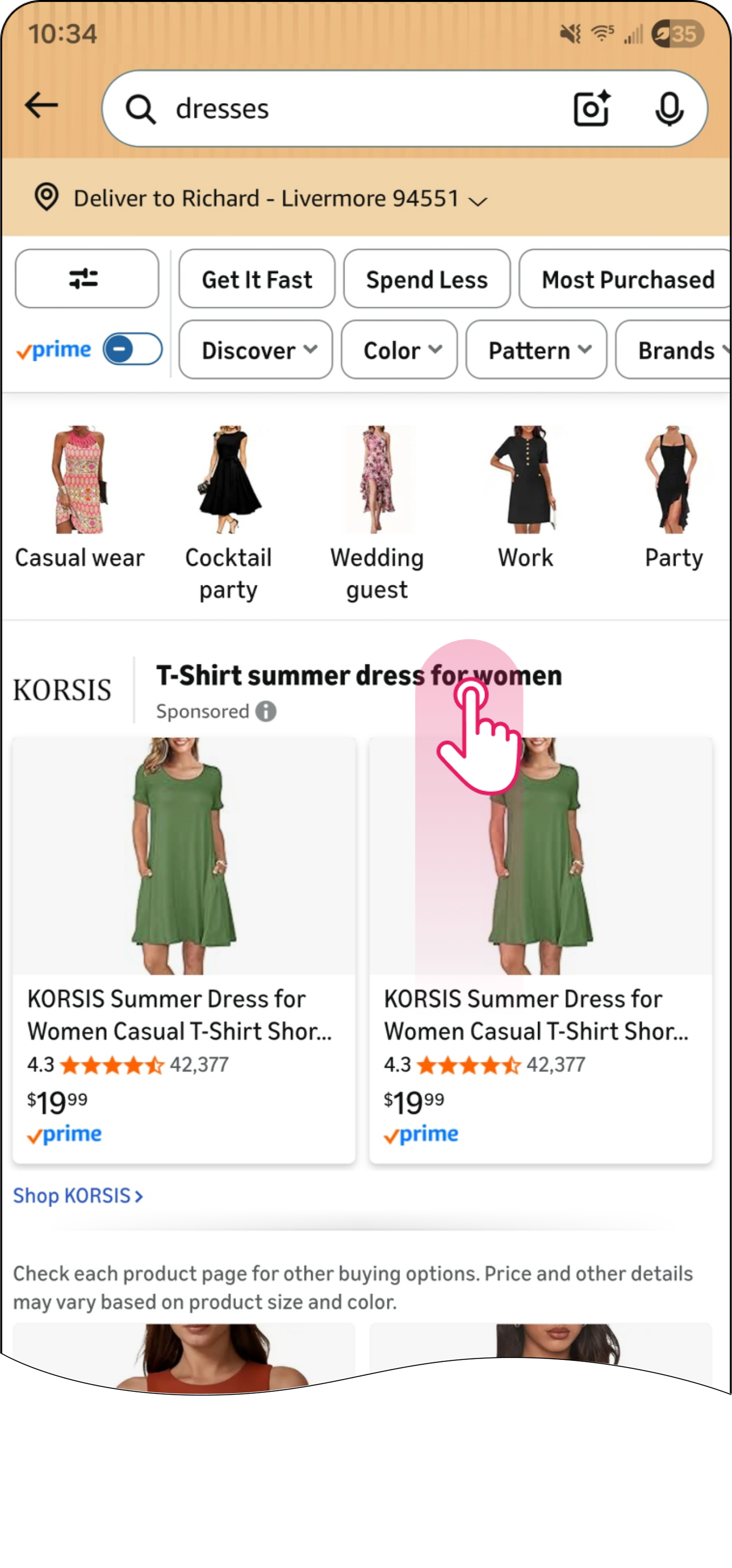 For customers who begin with broad, open-ended searches such as “dresses”, and are unsure of current fashion trends or styles they may not yet know to look for, I designed the UX and UI for a feature that surfaces the most up-to-date and relevant styles related to their initial query.